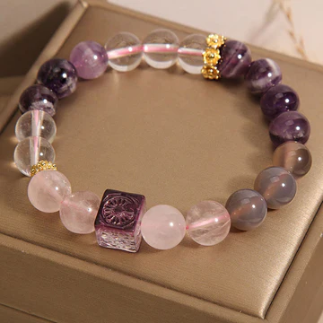 Buddha Stones Natural Amethyst Strawberry Quartz Crystal Fortune Bracelet