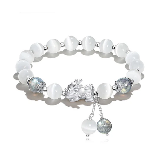 The Cat's Eye Moonstone Bracelet is a mesmerizing blend of natural stones, offering both beauty and support. Featuring cat's eye, moonstone, and strawberry quartz, this bracelet is adorned with a PiXiu ...