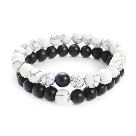 This natural Frosted Stone and White Turquoise Couple Bracelet is handmade with high-quality materials. The stones are believed to have healing and spiritual properties, such as promoting balance, wealth, relaxation, and protection ...