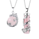 The stunning Buddha Stones Dragon Wrapped Round Ball Gemstone Couple Necklace Pendant set. This 2pc Dragon Couple Necklace Pendant set features beautifully crafted black onyx gemstone pendants, wrapped with dragon designs, on a round ball necklace chain. Perfect for couples who want to show their love and style with matching jewelry.