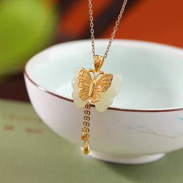 - Material: Hetian White Jade, 925 Sterling Silver Plated Gold