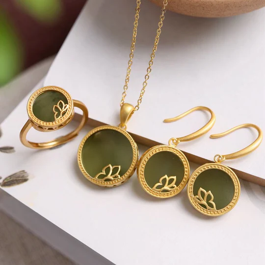 • Material: Hetian Cyan Jade, 925 Sterling Silver, 925 Sterling Silver Plated Gold