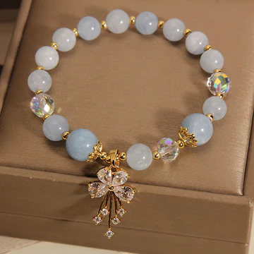 The Buddha Stones Bracelet seamlessly blends the calming essence of aquamarine with the gentle touch of pink crystal. Accented with a sparkling zircon butterfly charm, this bracelet is not just a piece of jewelry—it's a symbol of transformation, healing, and inner beauty. Wear it as a daily reminder of your journey towards balance and renewal.