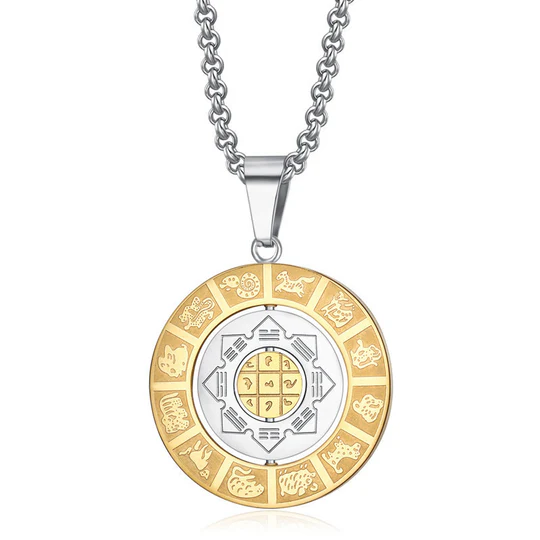 The Buddha Stones Chinese Zodiac Nine Palaces Eight Diagrams Bagua Amulet Harmony Necklace features a unique rotatable pendant design. Integrating traditional Chinese elements, this elegant necklace offers spiritual balance and is perfect for astrology enthusiasts and culture aficionados.