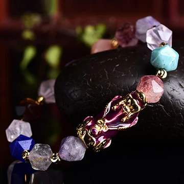 Discover the potent energy of the Buddha Stones FengShui PiXiu Amethyst Luck Bracelet. Handcrafted with exquisite amethyst, this bracelet enhances spiritual awareness, inner peace, and positive transformation. The Pi Xiu charm attracts wealth, repels evil spirits, and bestows blessings of luck and fortune. Embrace the natural beauty and power of this gemstone bracelet.