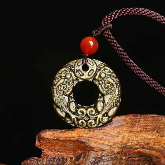 - Material: Gold Sheen Obsidian, Rope, Red Agate Bead