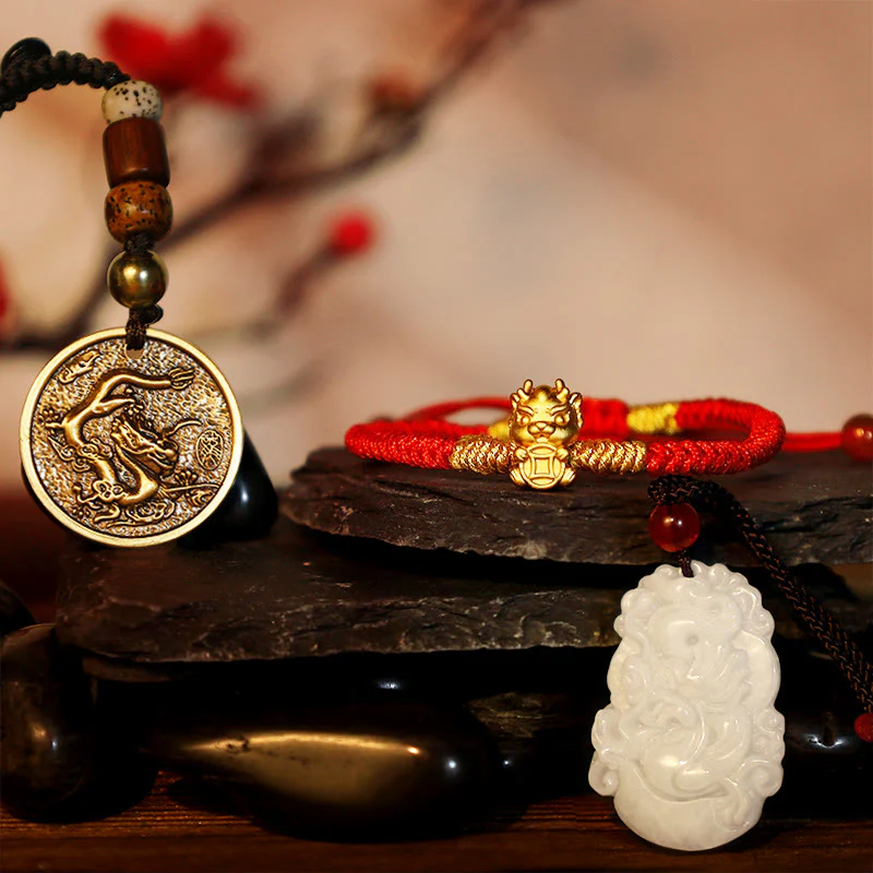 Experience the Buddha Stones Dragon 2024 Protection Bundle-1, an embodiment of fortune and protection. Crafted with precision, this bundle celebrates the Year of the Dragon in 2024, symbolizing strength and luck. It combines spirituality and elegance, enhancing your connection to positive energy and ancient traditions. Elevate your life with this meaningful set, radiating good luck and protection.
