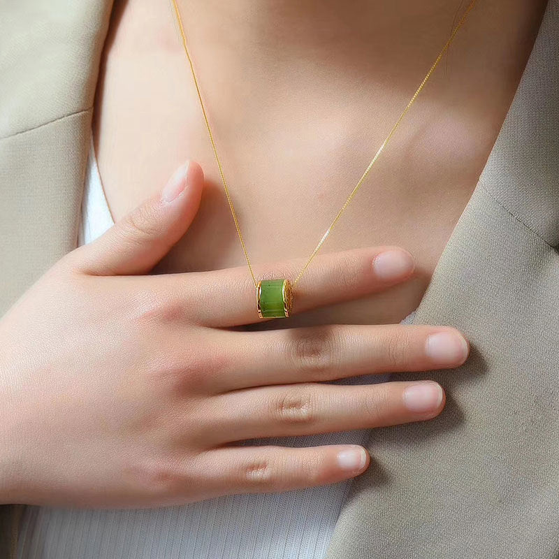 Buddha Stones Round Cyan Jade Luck Necklace Pendant Necklaces & Pendants BS 1