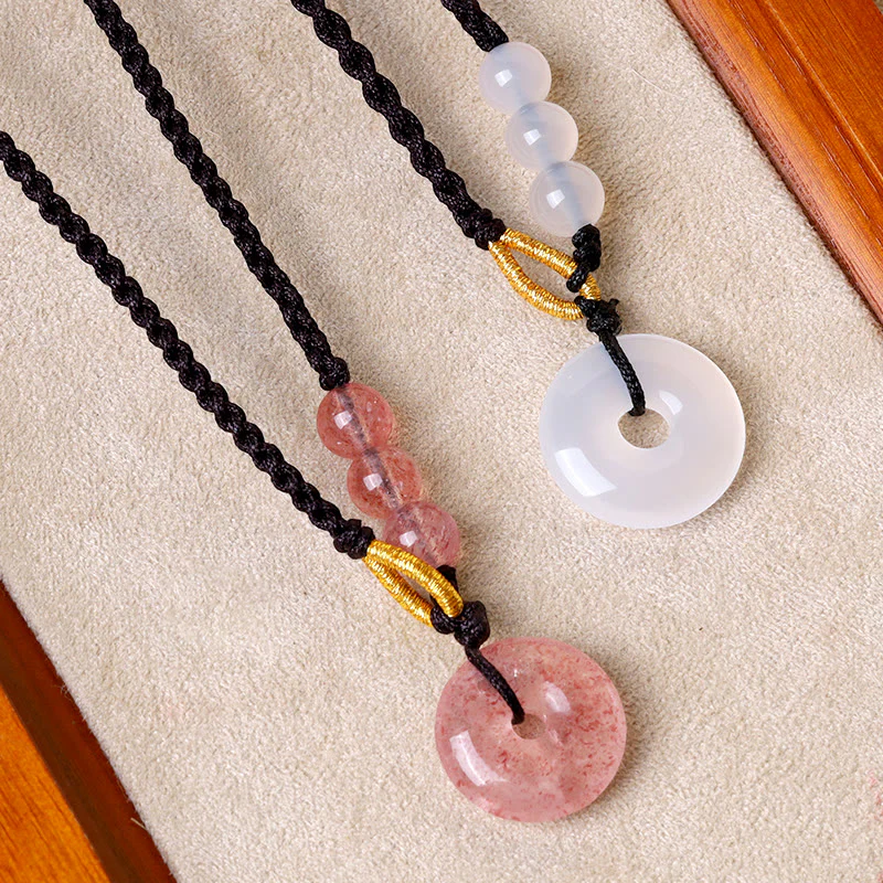 Buddha Stones Strawberry Quartz Chalcedony Peace Buckle Healing Necklace Pendant Necklaces & Pendants BS 2