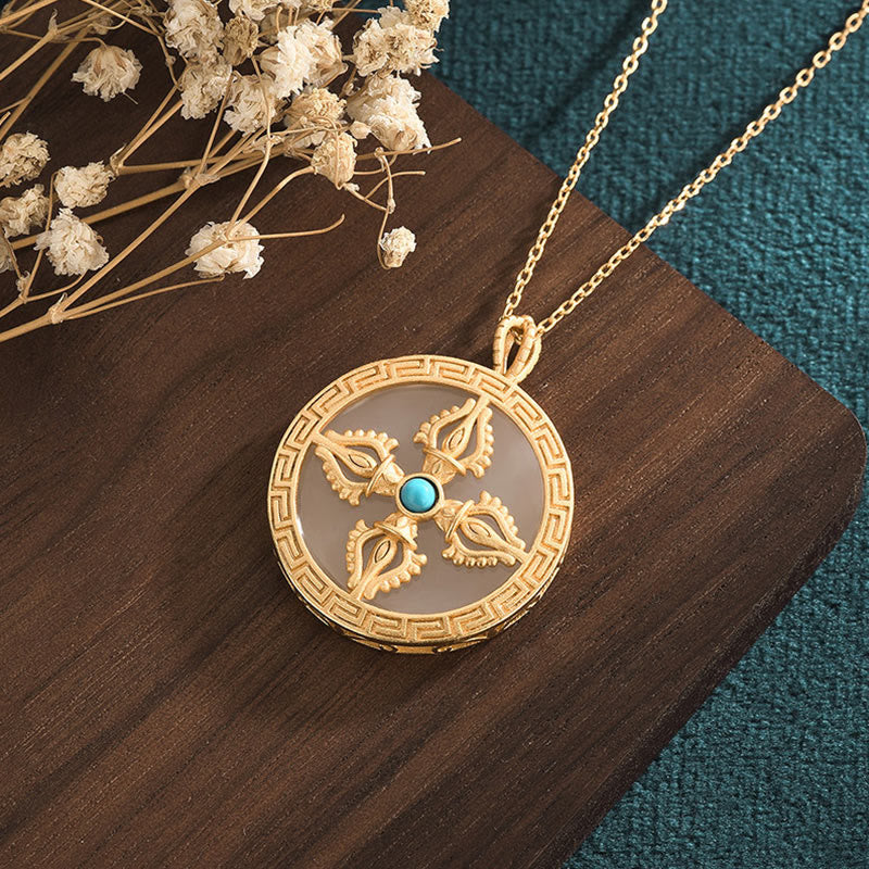 The Buddha Stones White Jade Double Dorje Necklace symbolizes both protection and prosperity. Crafted with White Jade, a stone of happiness and luck, and paired with the spiritual power of the Vajra, it offers a harmonious blend of positive energy and enlightenment. Wear this pendant as a talisman to ward off negativity and invite blessings into your life.