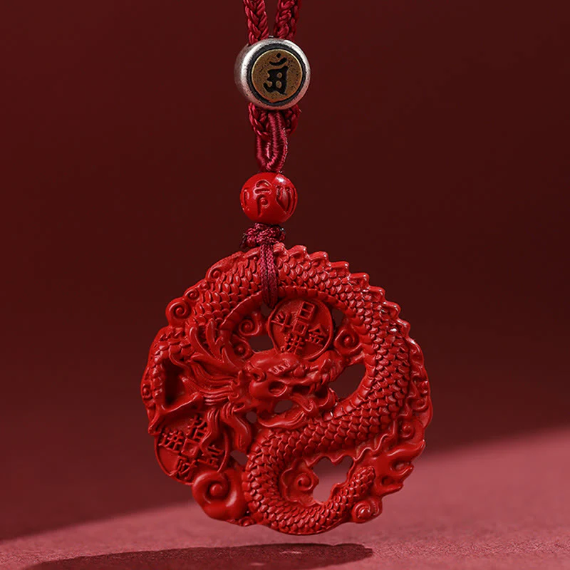Buddha Stones Year of the Dragon 925 Sterling Silver Natural Cinnabar Copper Coin Luck Necklace Pendant