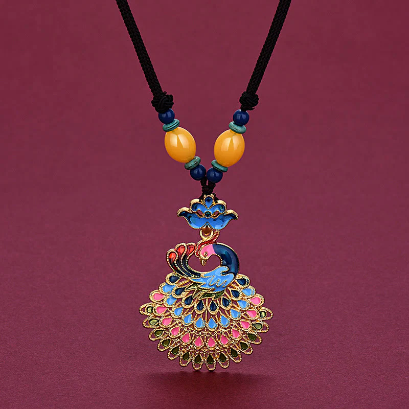Buddha Stones Colourful Peacock Amber Turquoise Agate Fortune Necklace Pendant